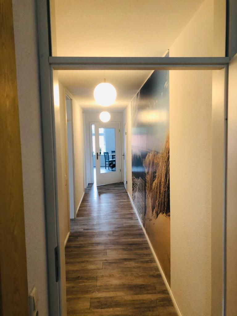 Unsere 140 m² große Ferienwohnung befindet sich im 1. Obergeschoss (Kindersicherung vorhanden) und bietet viel Platz für insgesamt bis zu 5 Gäste.